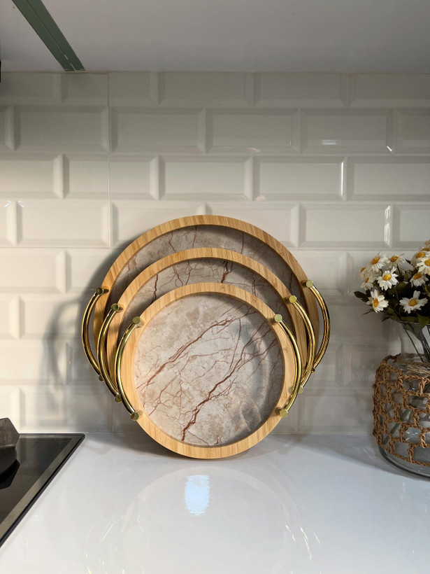 سینی بامبو دسته طلایی طرح ماربل کف اکرولیک