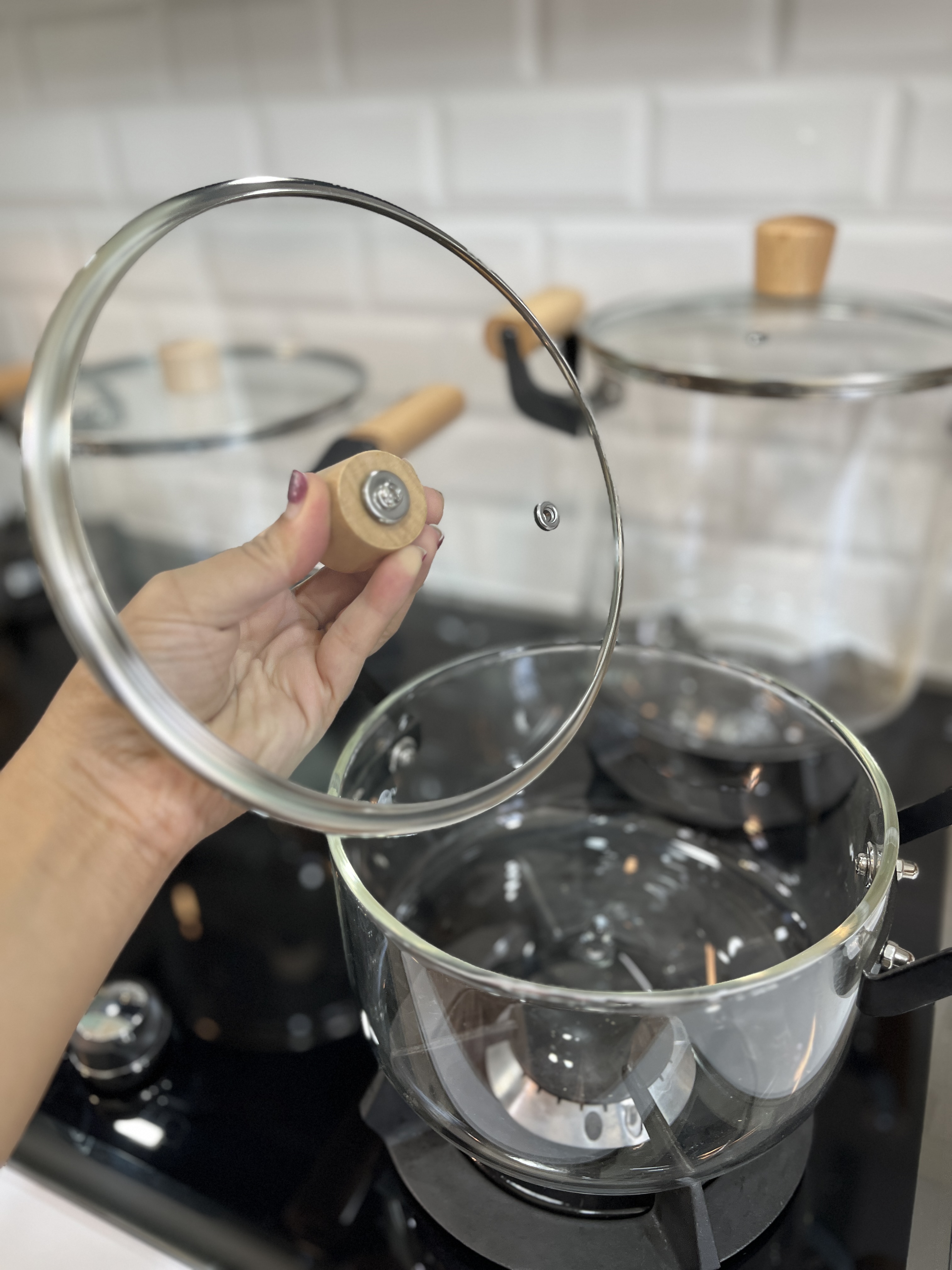 قابلمه های پیرکس دسته فلز کاملا شعله مستقیم وشیشه ضخیم